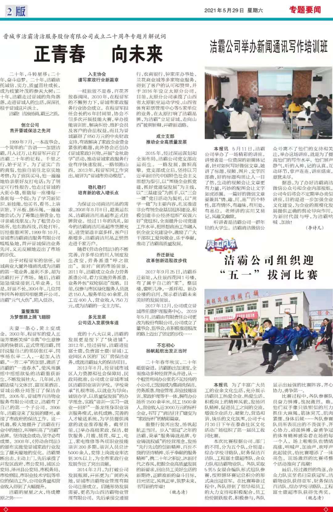 今天是2021529日,經(jīng)過一個多月的緊張籌辦,《山西潔霸》報紙終于創(chuàng)刊啦!這是潔霸人的一件大喜事,也是潔霸人的驕傲!伴隨著《山西潔霸》紙質(zhì)版的內(nèi)部發(fā)行,電子版也同步與你見面了。希望你能通過這個宣傳窗口,更好地走近潔霸,了解潔霸,關(guān)注潔霸,支持潔霸。